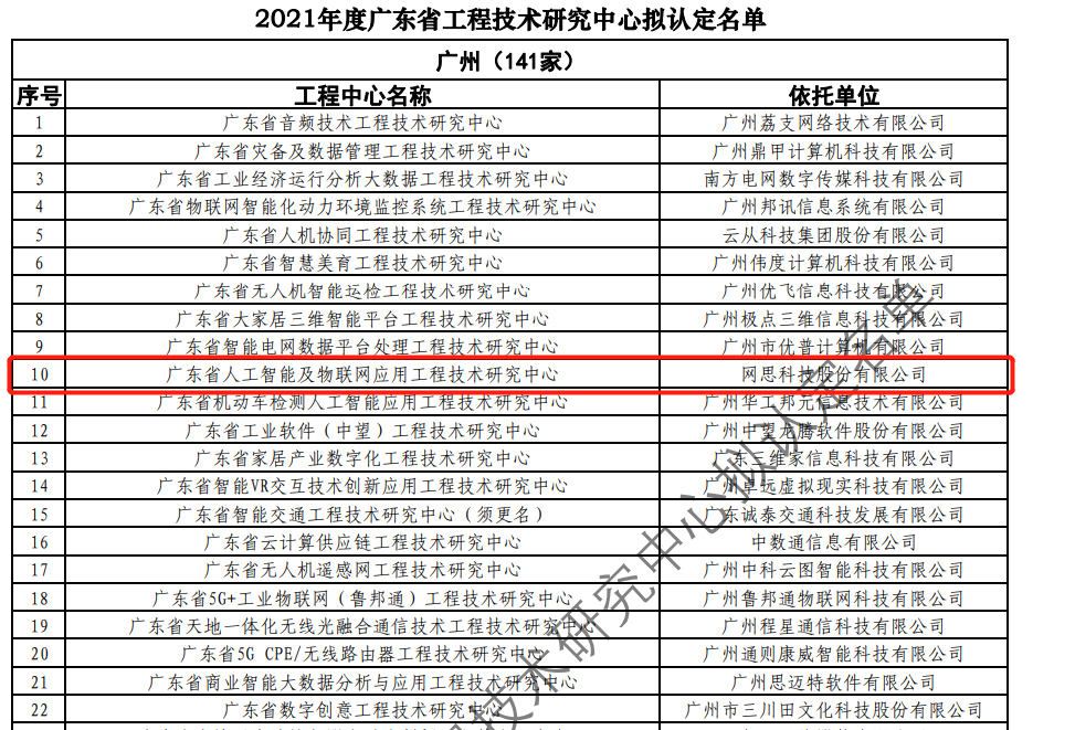 日前,广东省科技厅发布2021年度广东省工程技术研究中心名单。经过层层筛选、专家评审,依托开元官方版网站登录入口-开元(中国),建设的“广东省人工智能及物联网应用工程技术研究中心”榜上有名。广东省工程技术研究中心主要依托省内行业、领域具有科技实力的、拥有一定规模以上创新型企业建设,部分依托高校和科研院所组建。工程中心旨在